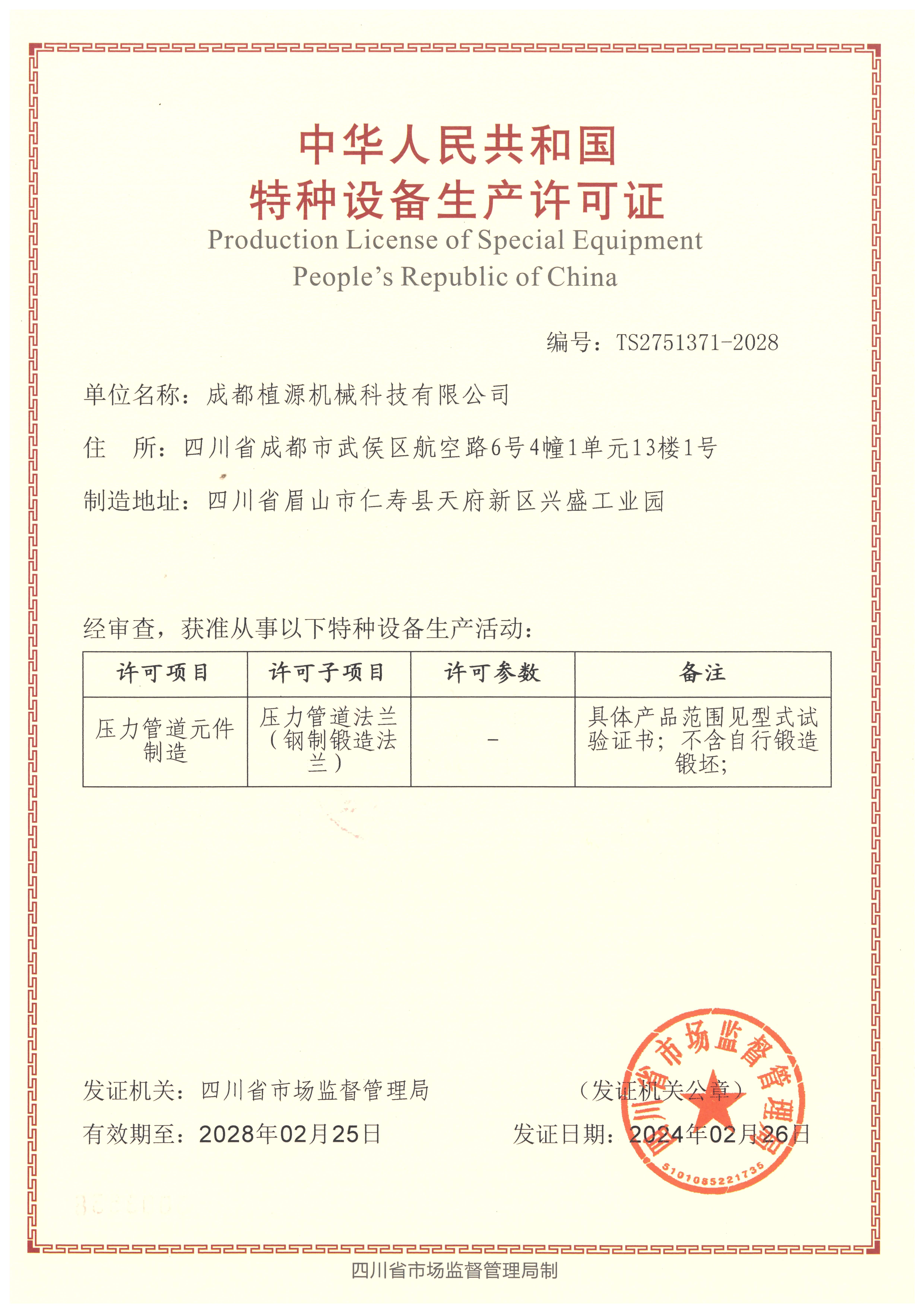特種設備制造許可證