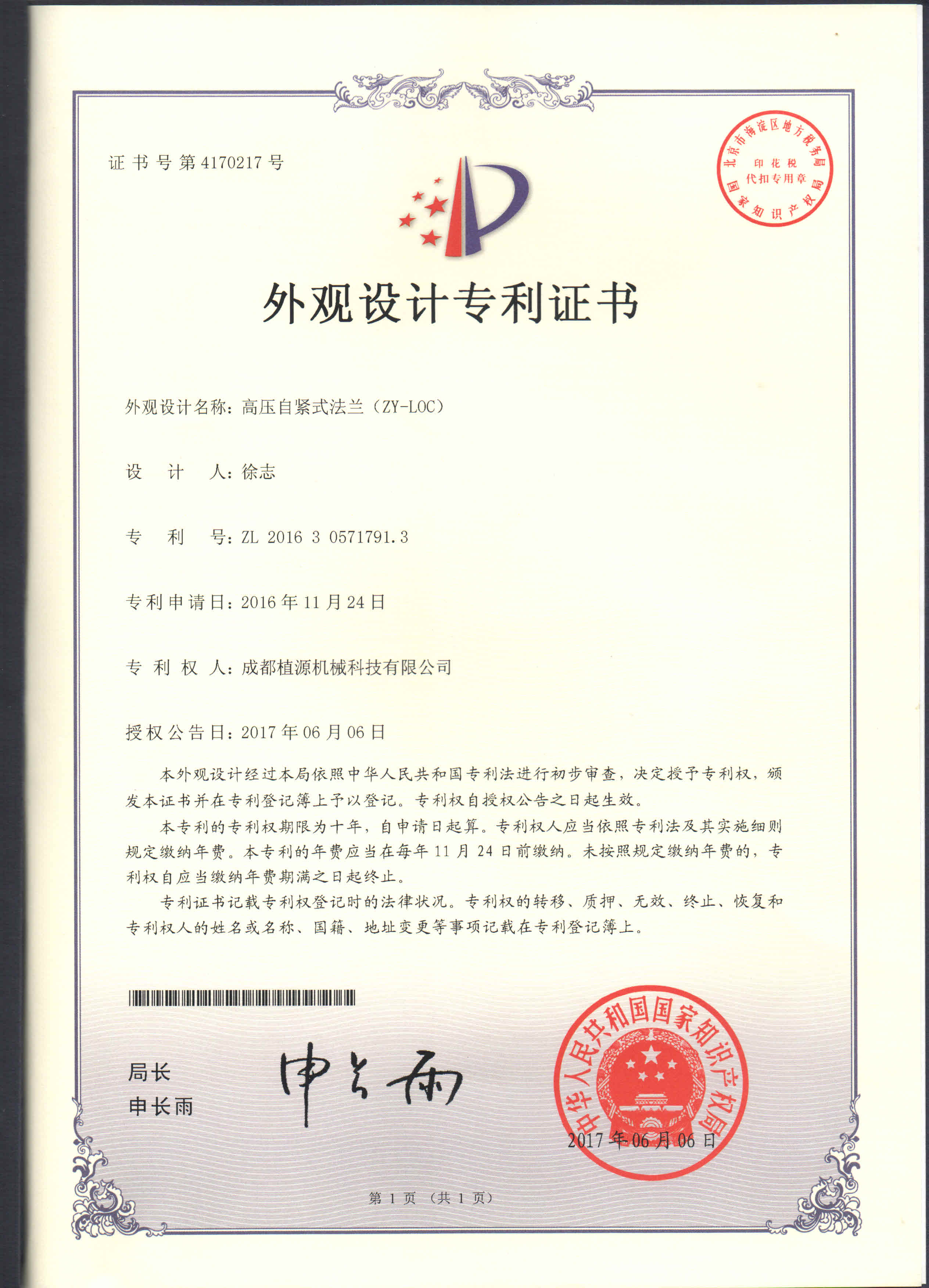 高壓自緊式法蘭ZY-LOC外觀(guān)專(zhuān)利
