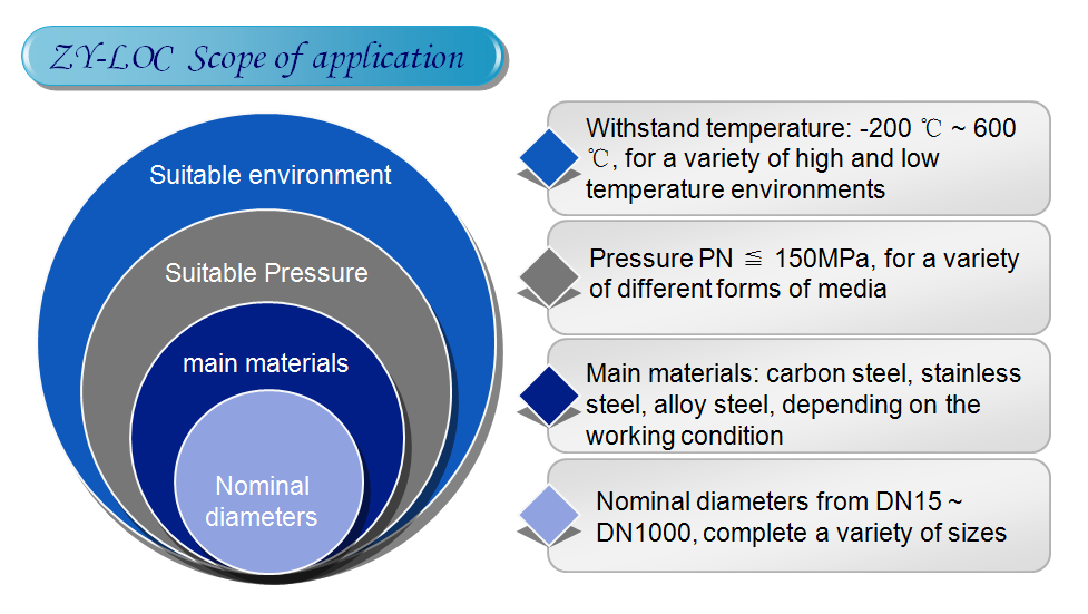 4、ZY-LOC seal ring separates strength and sealing, so there is no traditional flange’s arm of force H, it is elastic seal. This is the basic difference in force.