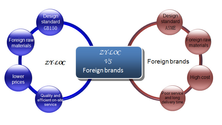 ? As we all know, all standards in the world refer to US ASME when we first set. China’s GB150 is no exception. Considering there is a big gap in China’s mechanic material’s metallographic structure, P, S content, synthesized mechanical properties, and corrosion resistance, we are sound on goose when we formulate GB150, so security coefficient is high, allowable stress is low and big corrosion allowance. ZY-LOC is designed based on GB150, but the most important part is imported from US and west Europe. So it is safer than similar products aboard.